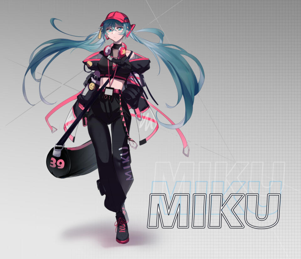 | Action pose (Miku style) | Front view (mirrored) | Front & back view | |